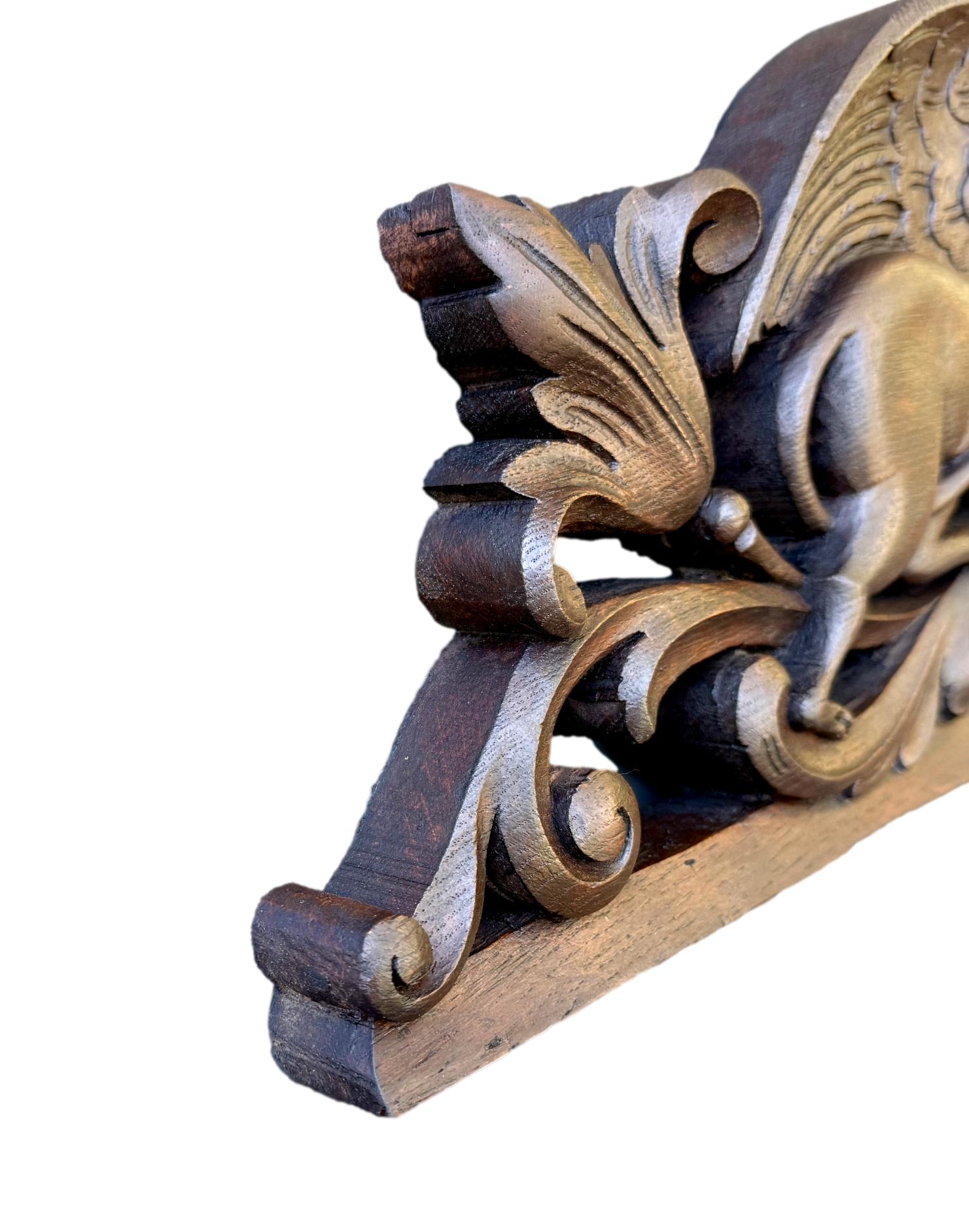 19th Century Carved Oak Pediment with Griffins – French Gothic Antique