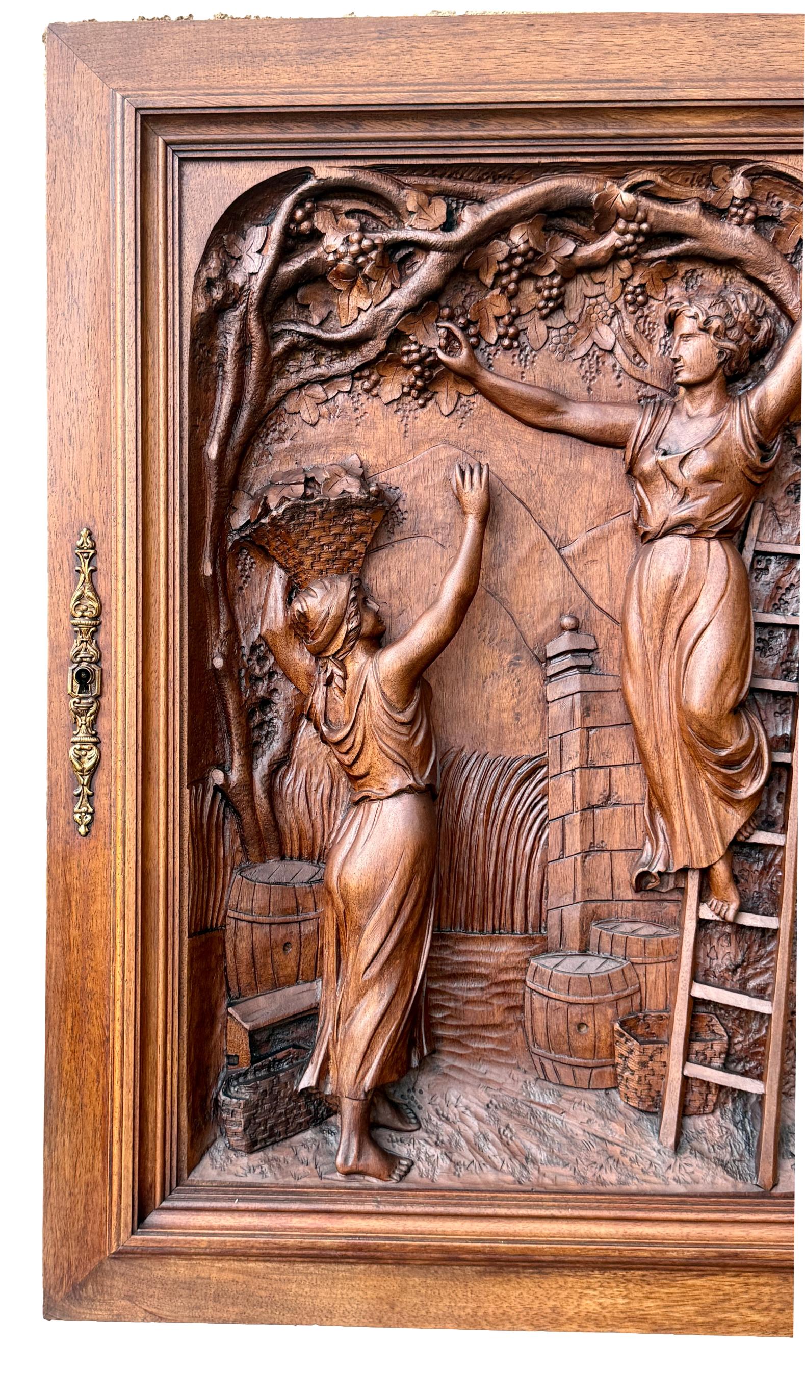 19th Century Carved Walnut Door Panel – French Grape Harvest Scene