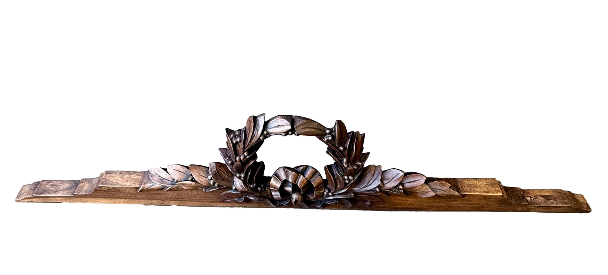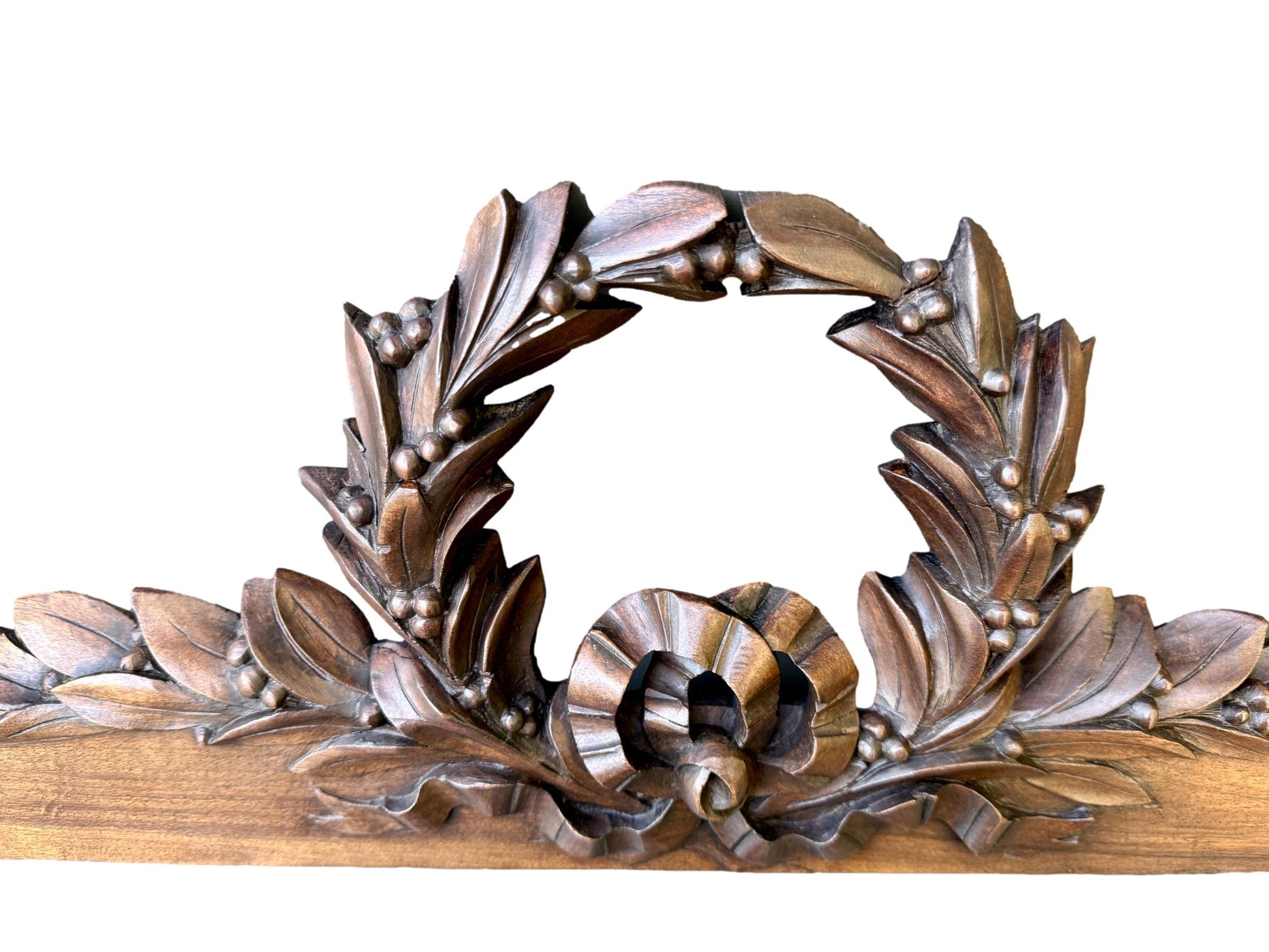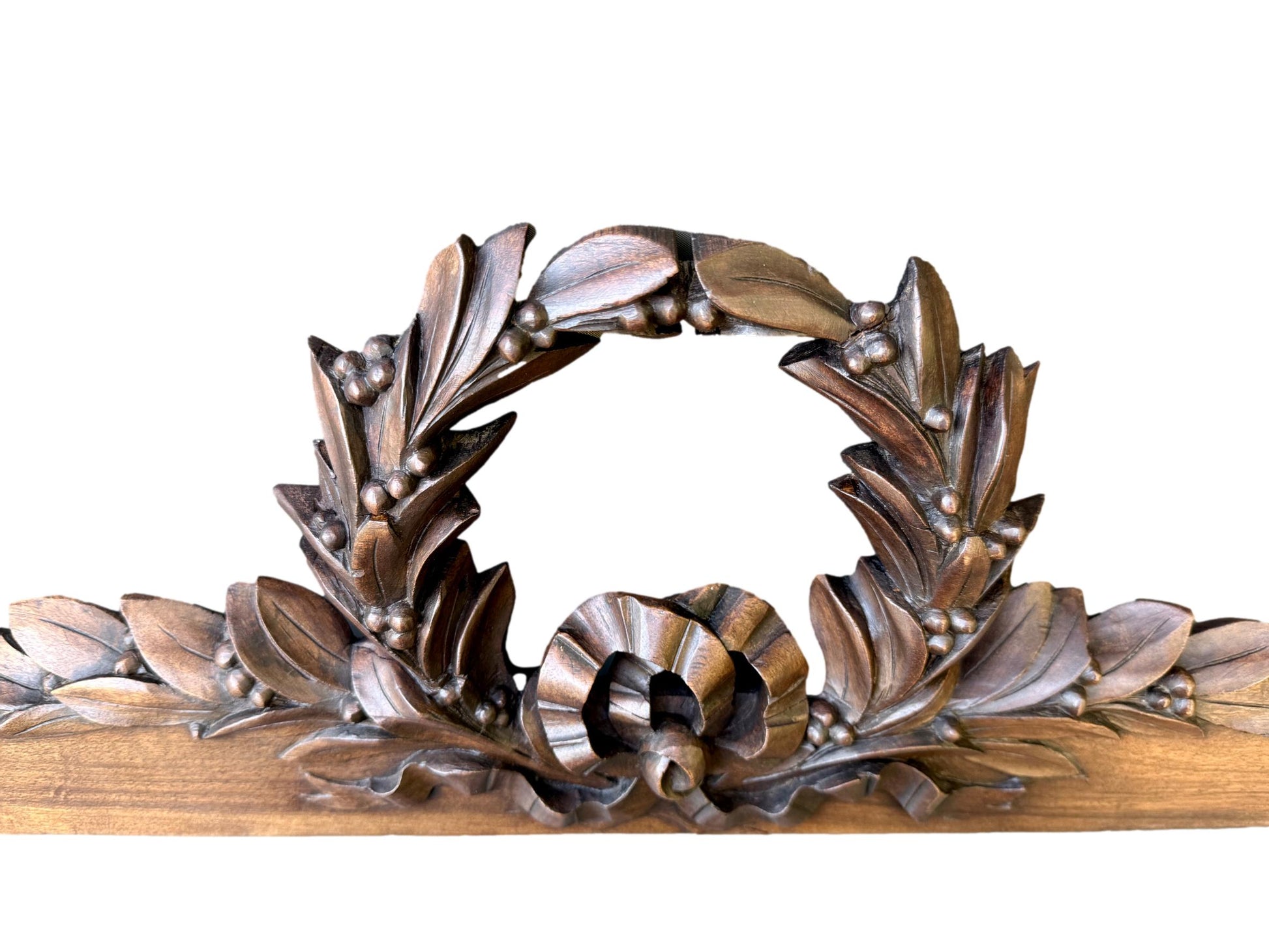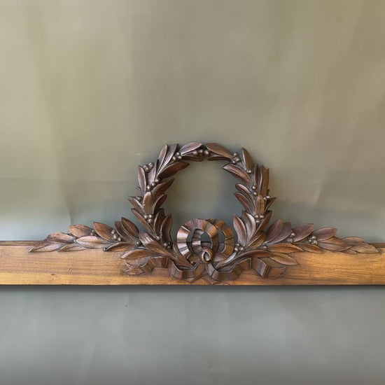 19th Century Carved Walnut Pediment – Louis XVI Laurel Wreath French Antique