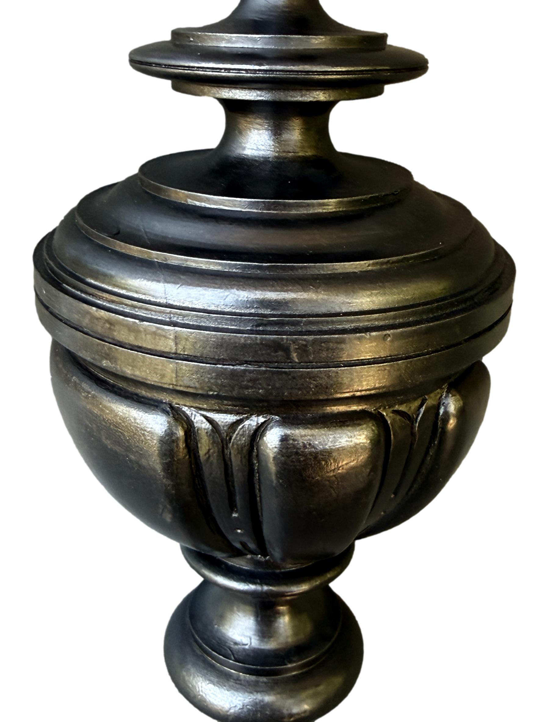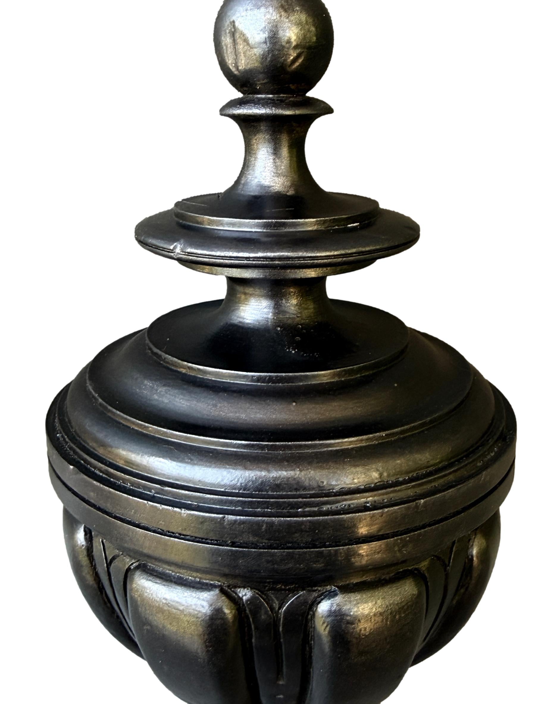 Its elegant black lacquered finish and large, sculptural form make it an exceptional decorative accent — once crowning a grand staircase, now a statement object in its own right.