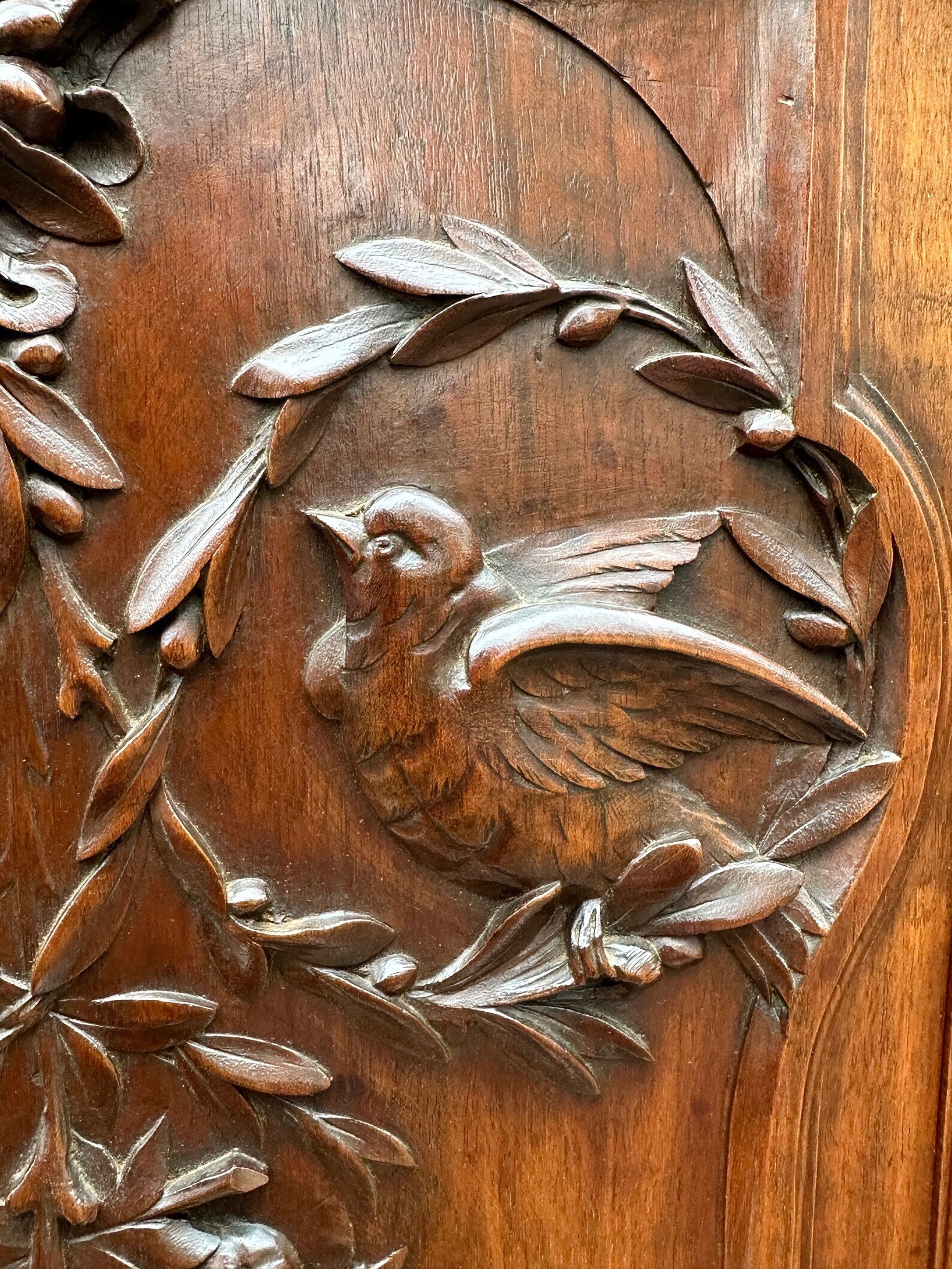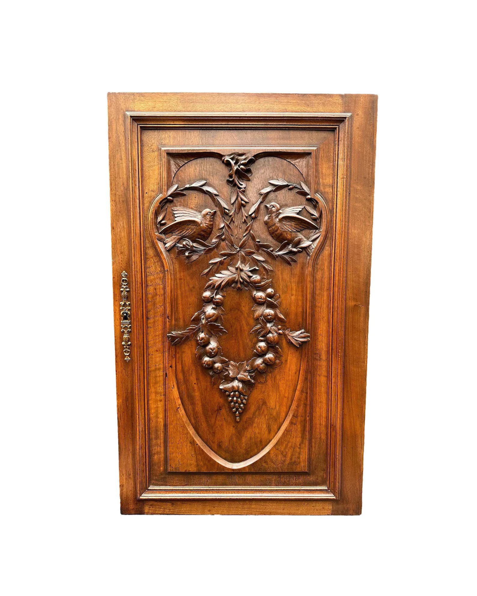 19th Large Carved Wood Cabinet Door Couple of Birds