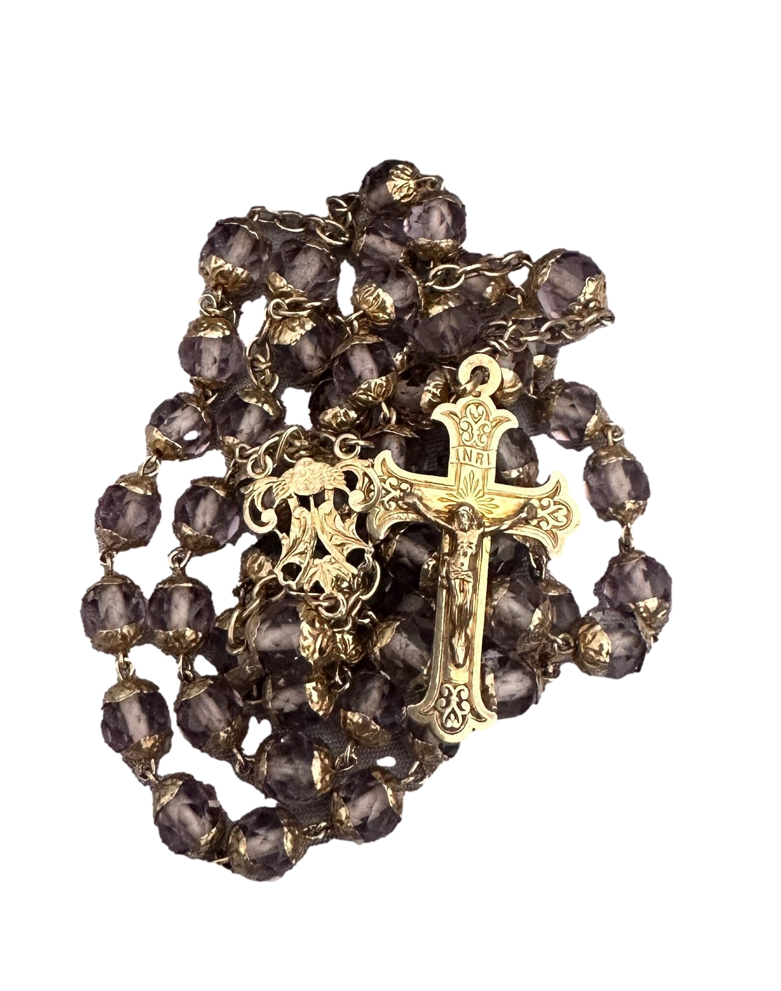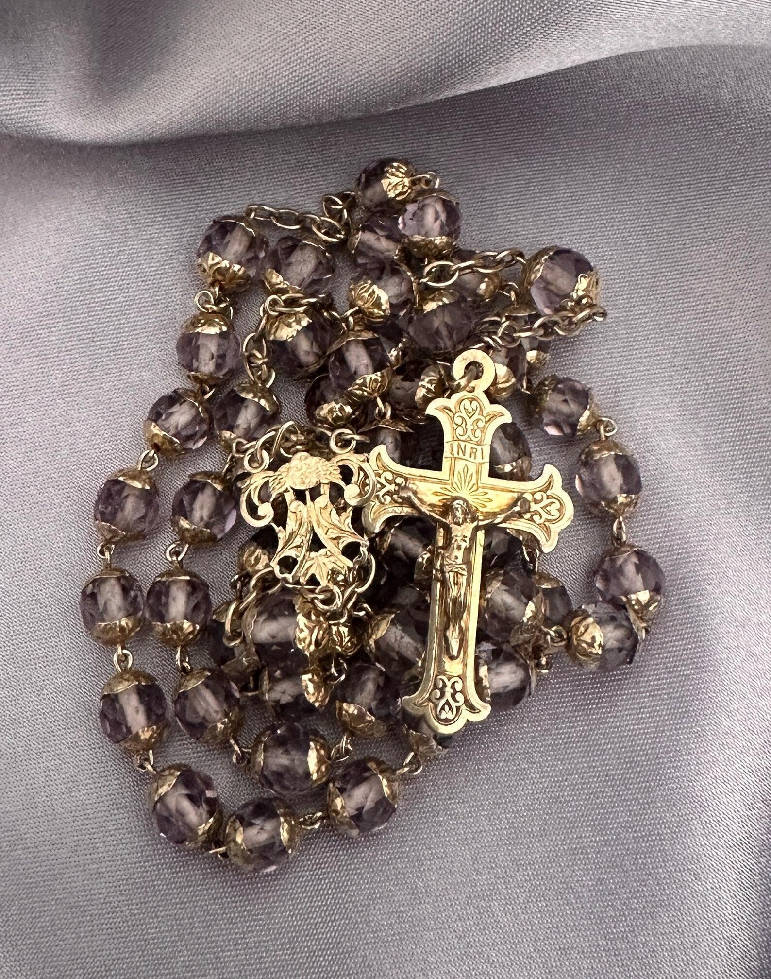 Antique French Vermeil Rosary – Faceted Light Purple Crystal Beads