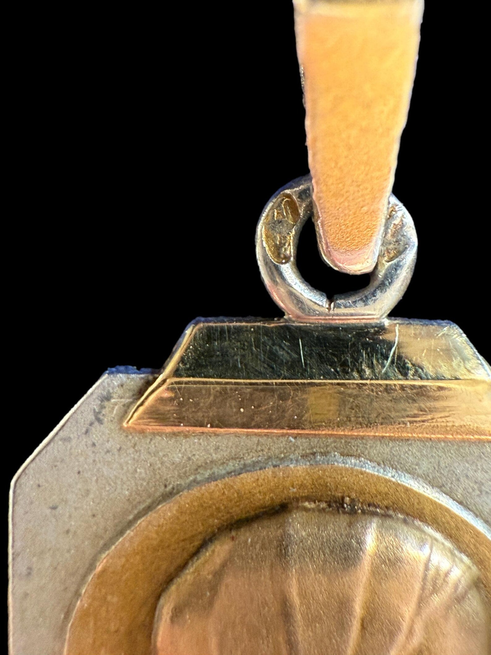 Art Deco French Virgin Mary Medal – 18K Gold & Vermeil on Sterling Silver