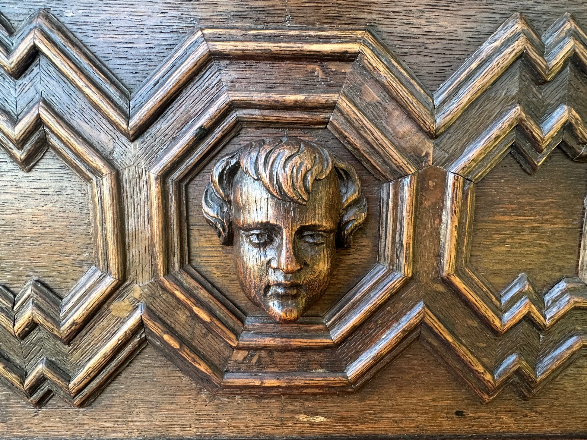 This door was probably part of a period piece of furniture or decorative woodwork in a noble or bourgeois home. The Renaissance style is distinguished by its rich, detailed ornamentation, often inspired by mythology, history and emblematic figures of the past.