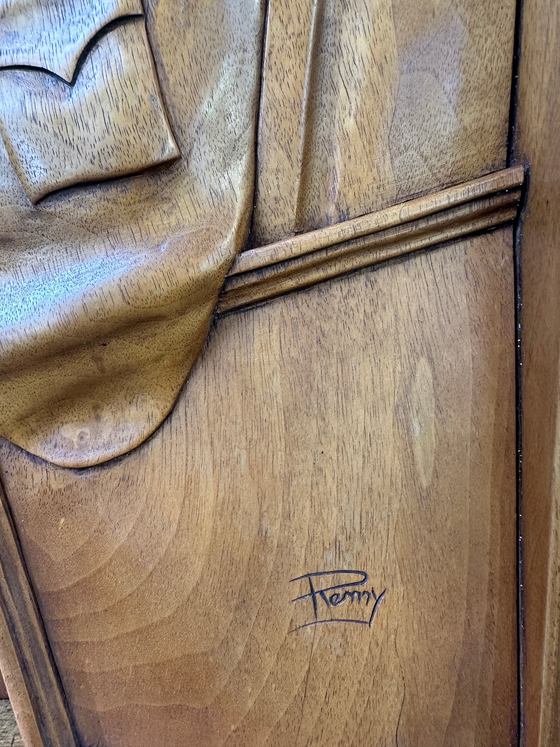 Mid-Century French Wood Relief Signed Remy – Carved Walnut Artist Panel