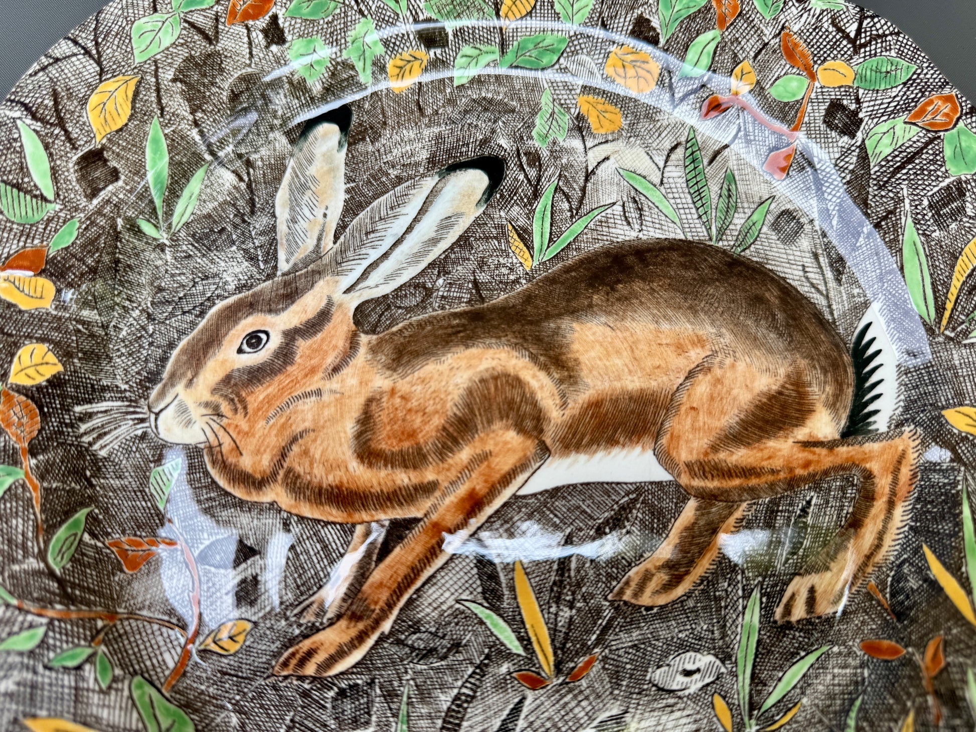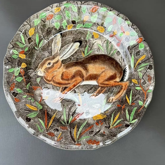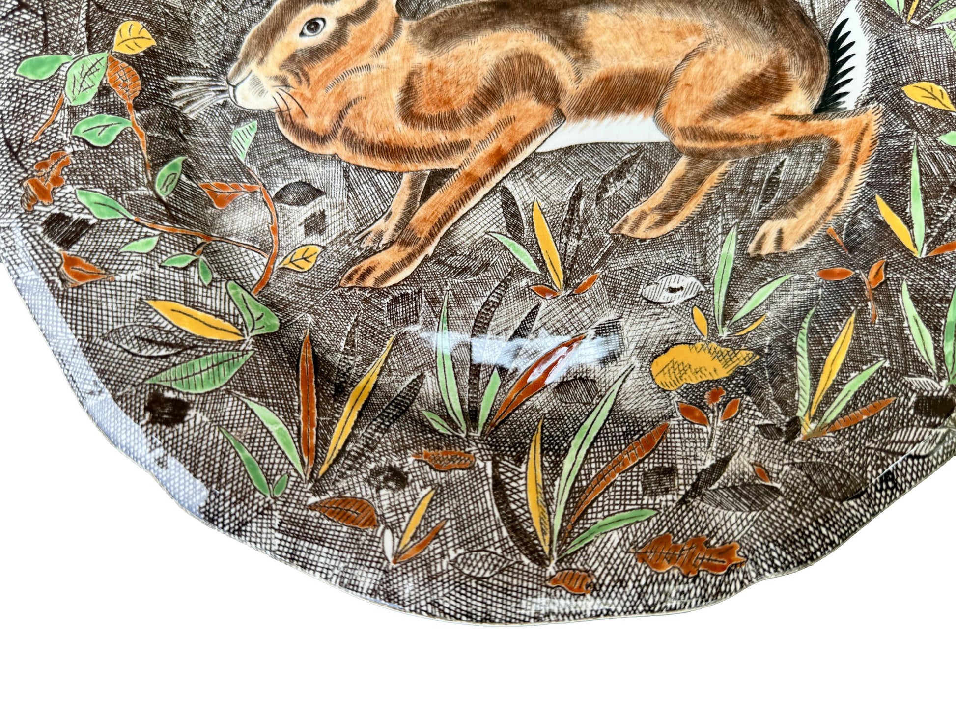 Discover this rare French vintage plate by Gien, from the Rambouillet collection, featuring a beautiful hand-painted rabbit (hare) in a woodland setting. Made in France between 1960 and 1984, this plate is part of a prestigious series originally designed for the French Presidency by artist Jean Bertholle.